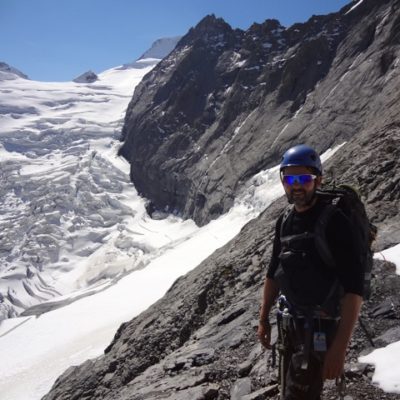 Drei Seilschaften die über den Mittellegigrat klettern wollten, fanden sich am Abend des 10. Septembers in der Mittellegihütte ein. Das ist Bergsteigen im Herbst; Gute Verhältnisse und wenig Leute unterwegs. Für mich eindeutig die schönste Zeit der ganzen Saison. Für den Dienstag war auf den Nachmittag ein Wetterwechsel angesagt. Daher beschloss ich früh in der Hütte zu starten. Um 5.00 gings los. Nach drei Stunden standen wir auf dem Gipfel. Nach 6.15h bei der Mönchsjochhütte. Der Grat war trotz dem Neuschnee der letzten Woche über weite Strecken ohne Steigeisen begehbar. Die Verhältnisse waren richtig gut und einsam…