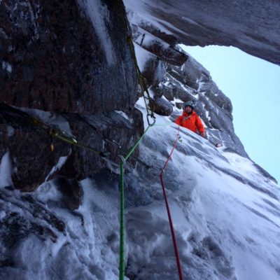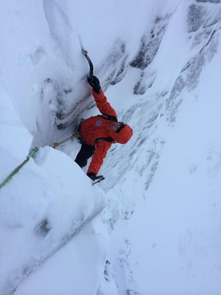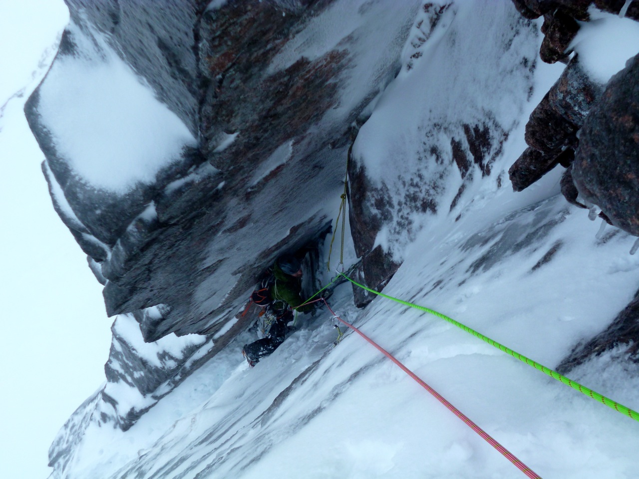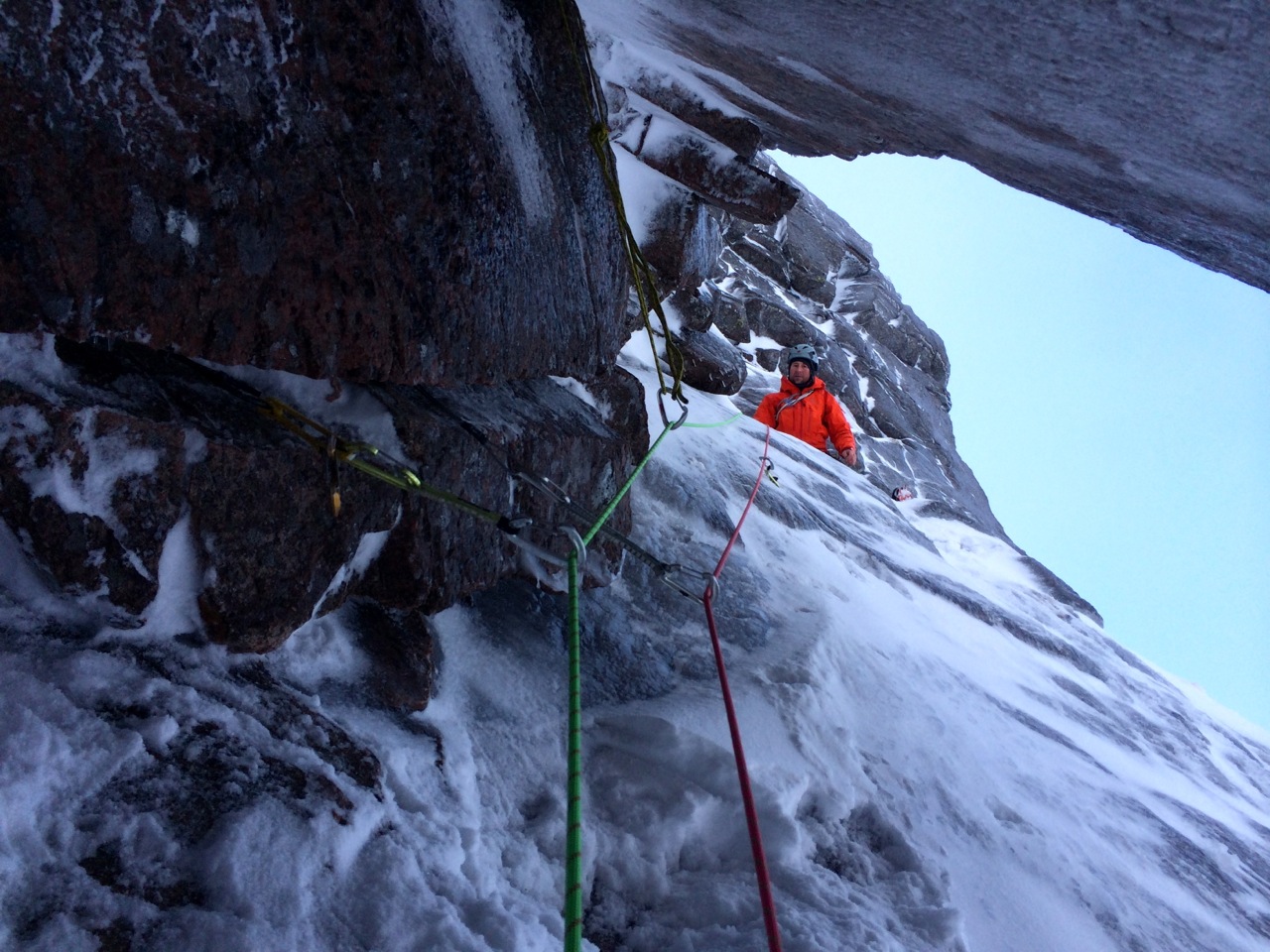 Das Abenteuer Schottland ging heute los. Das Wetter war schlecht angesagt, doch zeigte es sich gar nicht so garstig. Die Bedingungen in den Cairngorms sind bestens, so dass wir uns gut an die schottische Mixedkletterei gewöhnen konnten. Zuerst kletterten wir ‘Belhaven’. Danach war der Klassiker ‘Sterling Bomber’ an der Reihe. Top Tag!